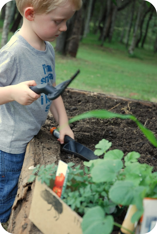 We filled the garden with premium garden mix (dirt with cow excrement!).